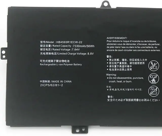 7.64V 7330mAh Batería de Repuesto para computadora portátil Compatible for Huawei HB4593R1ECW-22