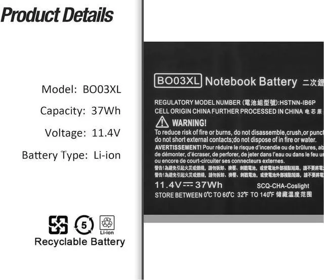 BO03XL TPN-Q152 Laptop Battery Compatible for HP Chromebook 14-x 14-x000 Stream 14-z 14-z000 SlateBook 14-p 14-p000 Energy Star Series 14-z000nl 14-z005nf 14-z000ns 14-x001nd 14-x0 03nd X006NA