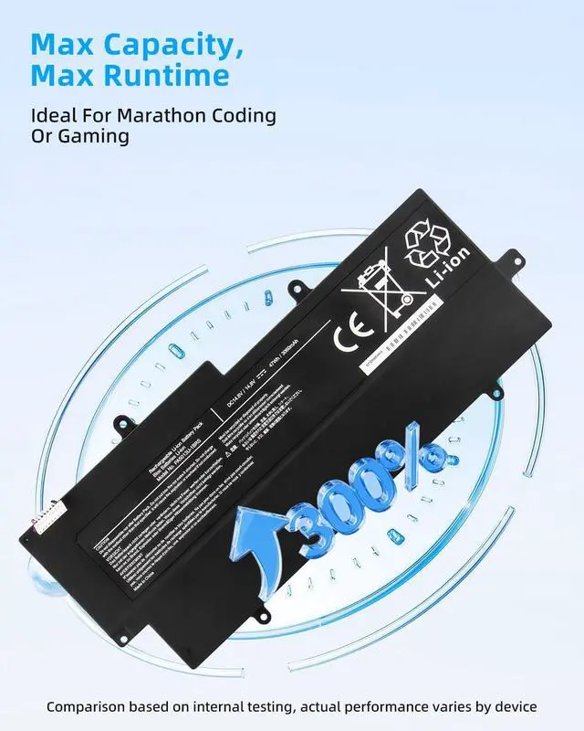 SPECIFICATION : Model Name: PA5013U-1BRS Voltage: 14.8V; Capacity: 47Wh; Grade A cells ensure fast charges and low power consumption; Built-in circuit protection ensures both safety and stability. Condition: 100% New; Battery life: More than 1000 cycles.