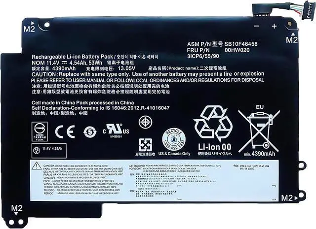 SPECIFICATION : Model Name: 00HW020 Voltage: 11.4V Capacity:53Wh 4540mAh; Grade A cells ensure fast charges and low power consumption; Built-in circuit protection ensures both safety and stability. Condition: 100% New; Battery life: More than 1000 cycles