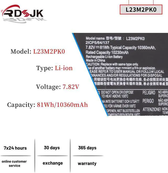 Battery type: Li-ion; Voltage: 7.82V; Capacity: 81Wh/10360mAh