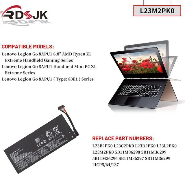 Compatible Models: Replacement for Lenovo Legion Go 8APU1 8.8" AMD Ryzen Z1 Extreme Handheld Gaming Series; for Lenovo Legion Go 8APU1 Handheld Mini PC Z1 Extreme Series; for Lenovo Legion Go 8APU1 ( Type: 83E1 ) Series