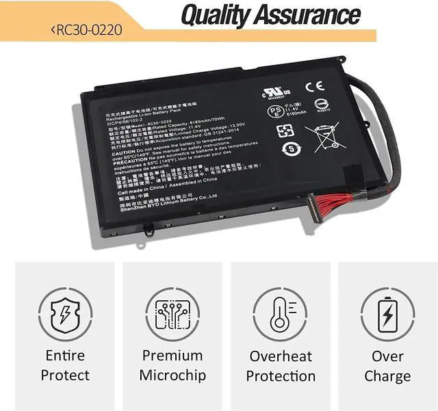 11.4V 70Wh 6160mAh Batería de Repuesto para computadora portátil Compatible for Razer RC30-0220 Pro 17 2017 GTX1060 i7-7700HQ 2019 RTX 2060 RTX 2070 RTX 2080 RZ09-0220 RZ09-02202 RZ09-02202E75