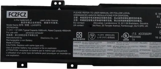 SpecificationsBattery Model:L24D3PF0 // Voltage:11.31V // Capacity:57.5Wh 5085mAh 3-cell // Color:Black // Condition:Brand New.