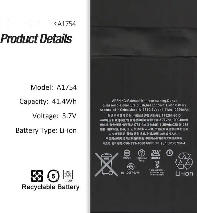 Compatible for iPad Pro 12.9 A1754 A1670 A1671 020-01238