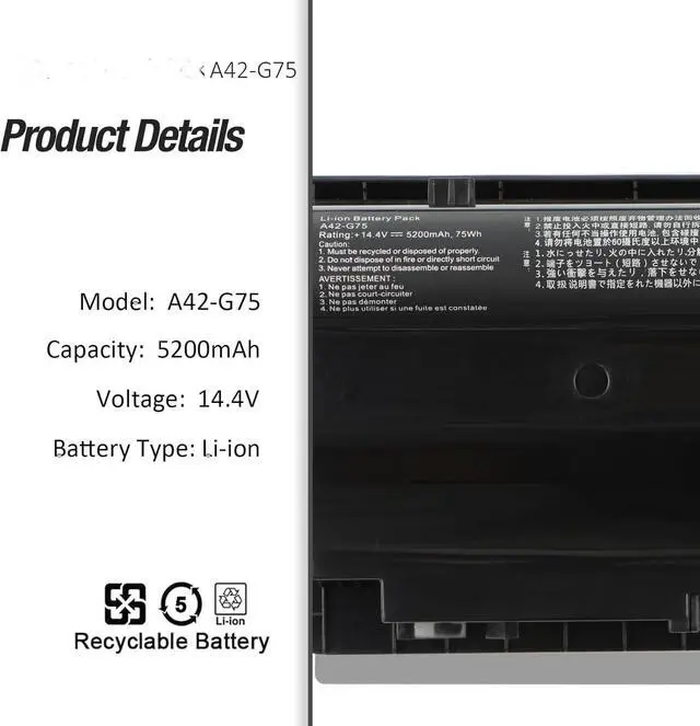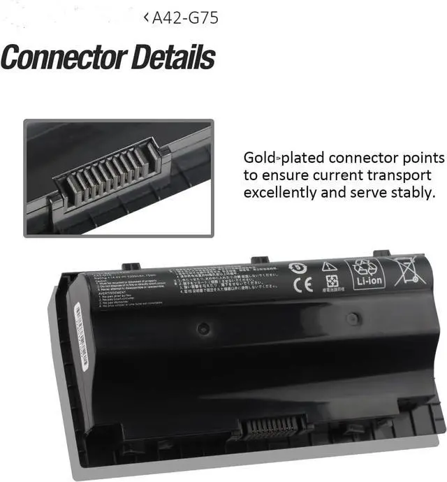 5200mAh A42-G75 Batería de Repuesto para computadora portátil Compatible for ASUS ROG G75 G75V G75VW G75VX 3D G75VW-T1040V G75VW-T1031V G75VX-T4216H G75VX-T4020H G75VX-CV071H G75VX-CV076H