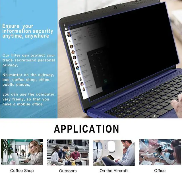 3.FILMEXT 15.6 inch laptop privacy screens is suitable for a variety of public places, business meetings, open-style offices, financial institutions, cafes, airplanes, trains etc., protects your sensitive information, your passwords, personal content etc., which might be leaked.