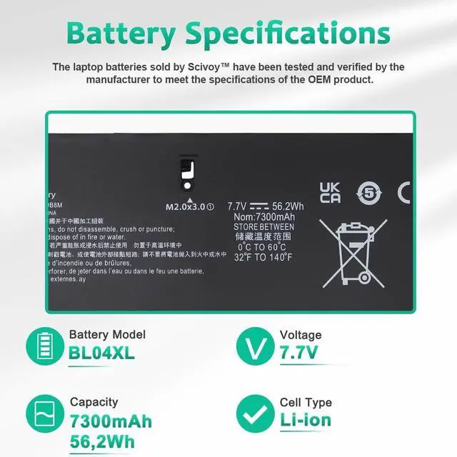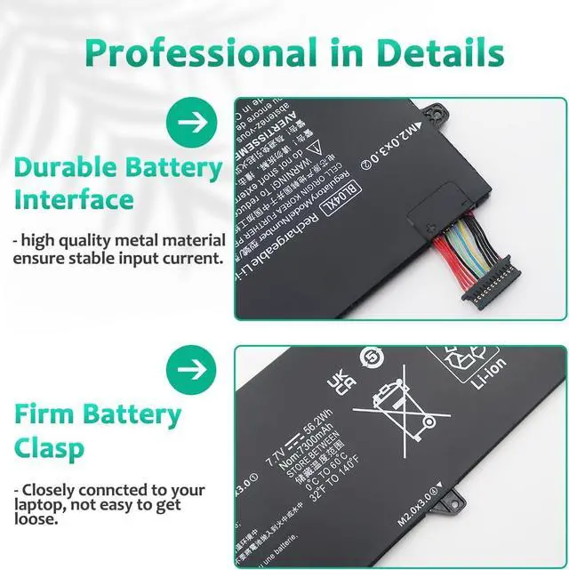 LONG-LASTING BATTERY LIFE: With 7.7V capacity ( 56.2Wh/7300mAh ), The ( BL04XL ) battery ensures all-day power for your laptops in a factory-fresh, Never-used battery pack designed for maximum performance.