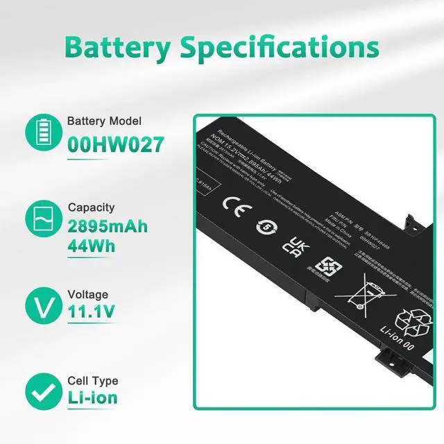 LONG-LASTING BATTERY LIFE:With 15.2V, capacity (44Wh/2895mAh),the(00HW026) battery ensures all-day power for your laptops in a factory-fresh, never-used battery pack designed for maximum performance.