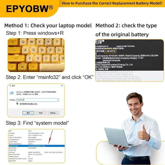 Purchase SkillsPlease open the back cover of the laptop before ordering and make sure that the original battery model is consistent with the listing. After getting the battery, please install the battery correctly, make sure that the battery connector is firmly connected to the laptop motherboard, and use the original charger to charge the laptop.Discharge the new battery to 5% (not 0%), then charge and cycle 3-4 times to wake up the new battery.