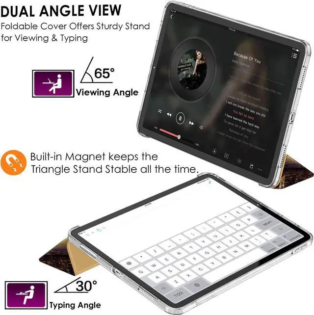[Dual-ANGLE Viewing/Typing] A built-in multiple angle viewing and typing stand allows for comfortable typing, watching videos, surfing the web, and reading while keeping your hands free and reducing the risk of joint pain.