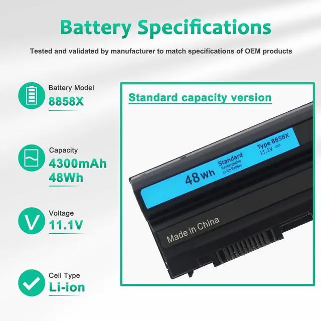 LONG-LASTING BATTERY LIFE: With 11.1V capacity ( 48Wh/4400mAh/6-cell ), The ( 8858X ) battery ensures all-day power for your laptops in a factory-fresh, Never-used battery pack designed for maximum performance.