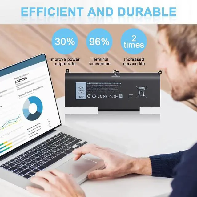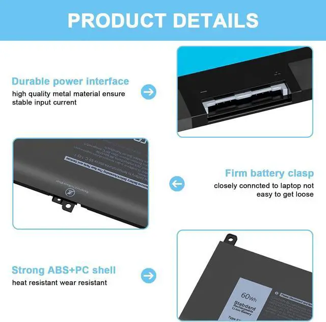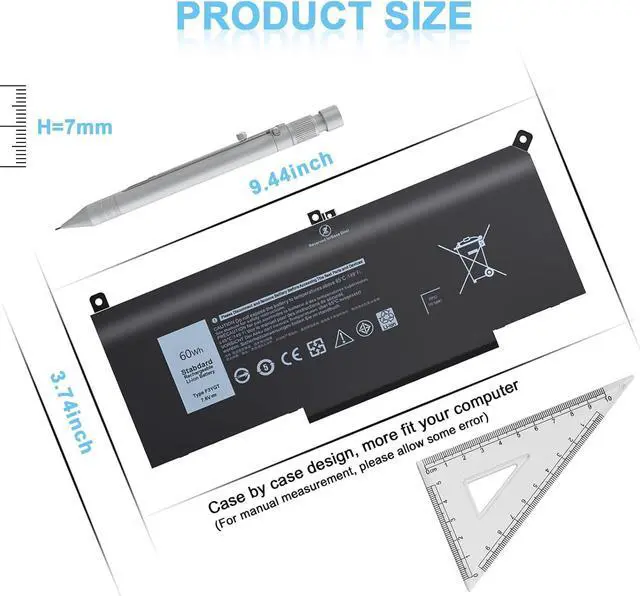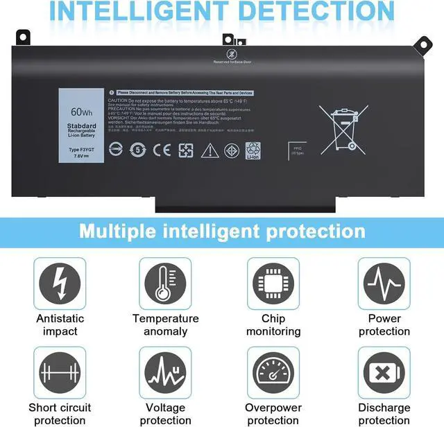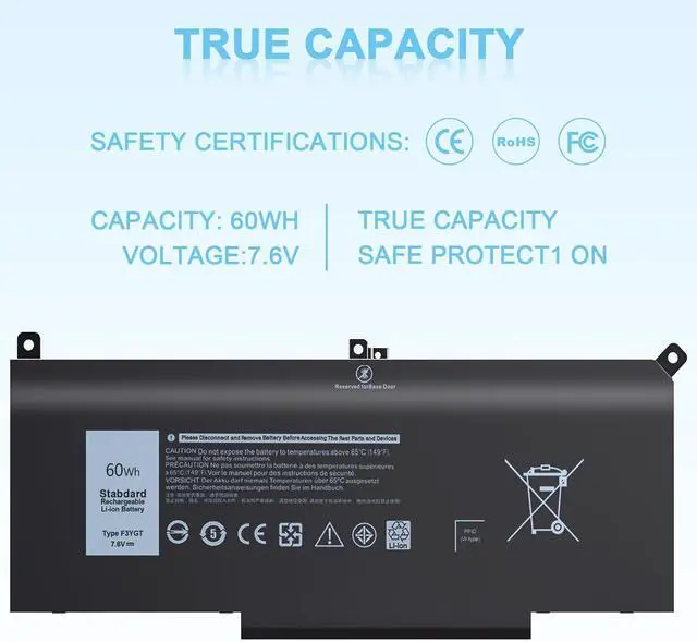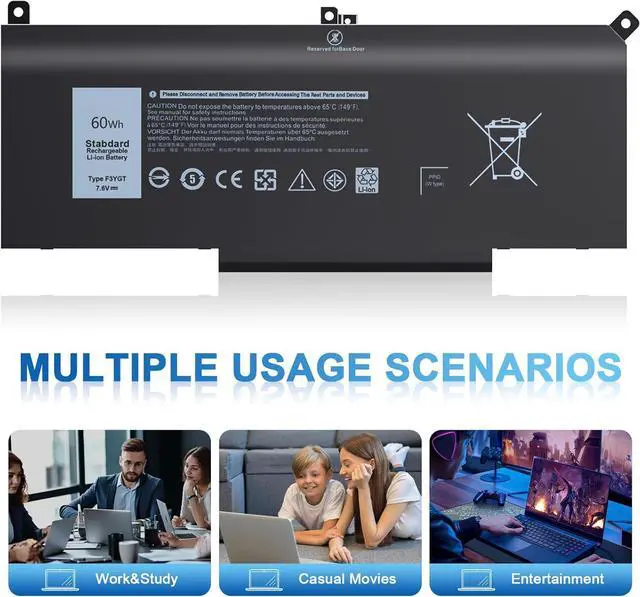 Specification: Battery Type: Li-ion Capacity: 60 Wh; Cells: 4-cell; Voltage: 7.6 V.Model: F3YGT 0F3YGT