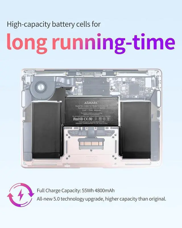 Replacement Battery ModelA1965, Full Charge Capacity: 55Wh 4800mAh, Voltage: 11.4V, Compatible with models: MacBook Air 13-inch A2179 (2020).