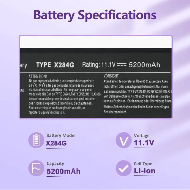 Long-Lasting Battery Life:With 11.1V,capacity (48Wh/5200mAh),the(X284G) battery ensures all-day power for your laptops in a factory-fresh, never-used battery pack designed for maximum performance.