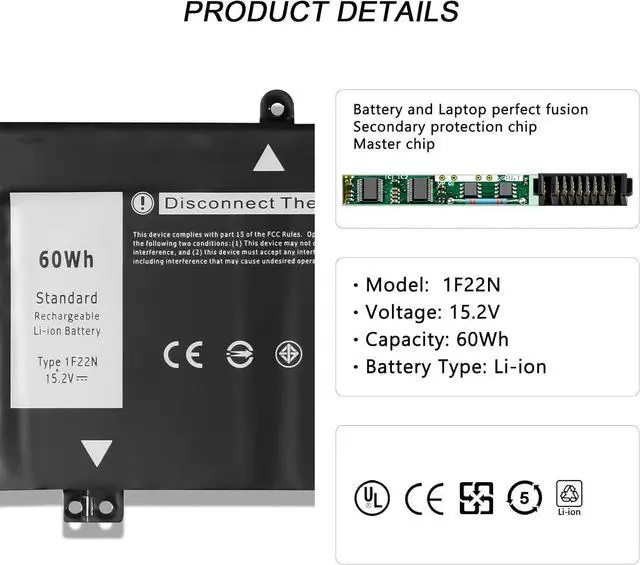 • Compatible Laptop Models1F22N battery is compatible for Dell Alienware M15 R1, 2019 Alienware M17 R1, G5 5590, G7 7590, G7 7790, G5 15 5590, G7 17 7590 7790 and other laptops including P79F, P79F001, P37E, P37E001, P82F, P82F001, P40E, P40E001
