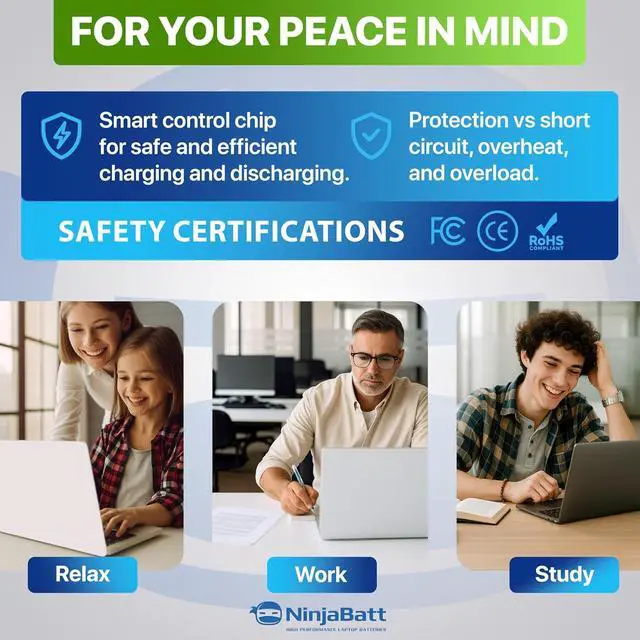 SAFETY FIRST: Dont fall into buying cheap and unsafe batteries, our Dell batteries are certified for safety and packed with a variety of safety features, including short circuit, overheat, and overload protections.