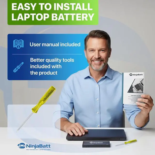PREMIUM QUALITY REPLACEMENT NOTEBOOK BATTERY: Bring your laptop back to life with Ninjabatt's high quality laptop battery - Made of high quality materials, top grade battery cells and packed with safety features.