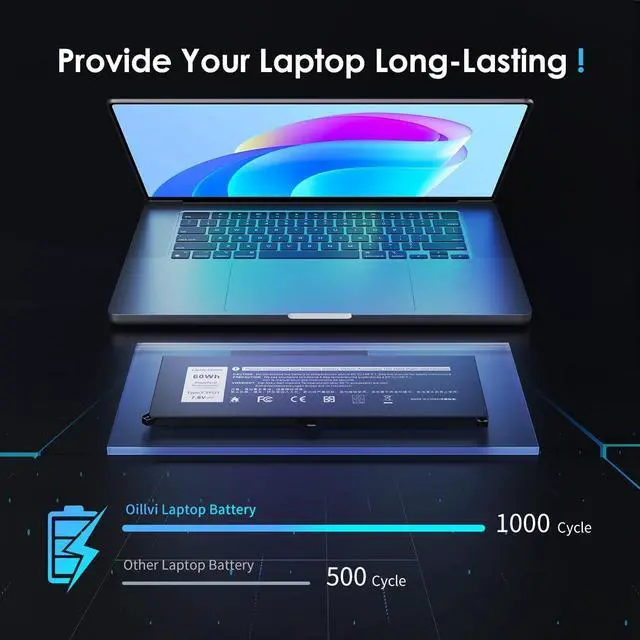 Compatible Part Number: F3YGT laptop battery replace part DM3WC 2X39G 0DM3WC 0F3YGT 451-BBYE 453-BBCF KG7VF. (Only replace with type 60Wh battery, NOT fit DJ1J0 42WHr 3-Cell! Please check your original battery to make sure you get the correct replacement battery!)