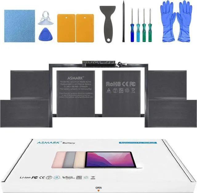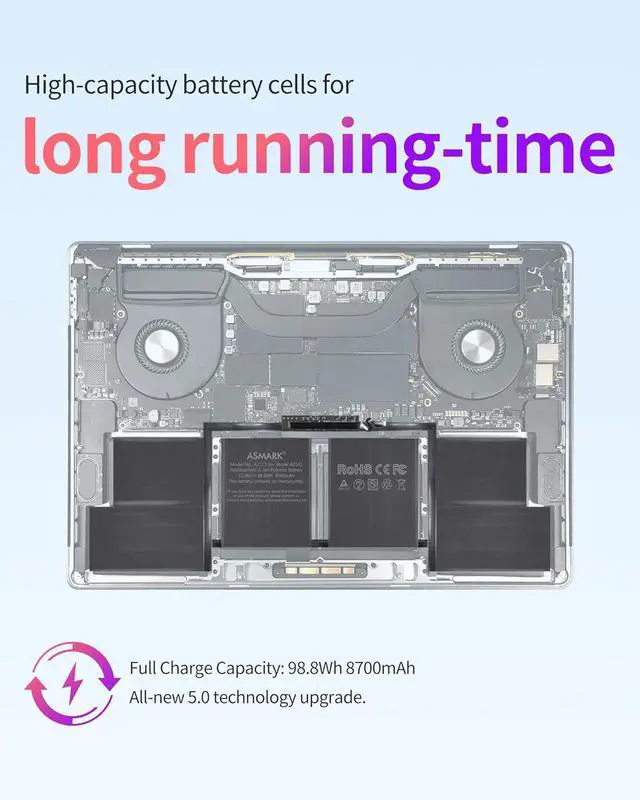 Replacement Battery ModelA2113, Full Charge Capacity: 98.8Wh 8700mAh, Voltage: 11.36V, Compatible with models: MacBook Pro 16-inch A2141 (2019).