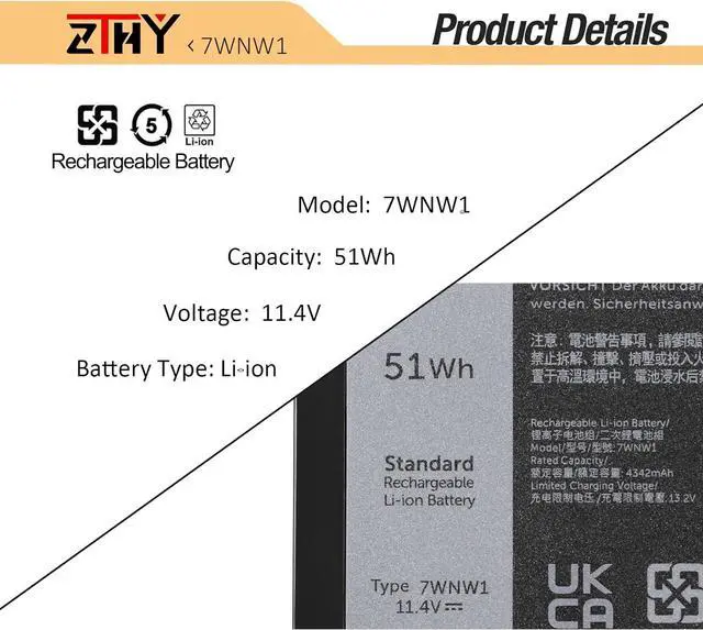 Specifications:Battery type: Li-ion. Color: Black. Voltage: 11.4V. Capacity: 51Wh/4342mAh/3Cell. New from Manufacturer. Up to 500 recharge cycles over the life of the battery.