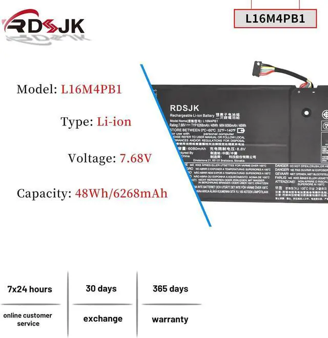 Battery Type: Li-ion; Voltage: 7.68V/7.72V; Capacity: 48Wh; Color: Black