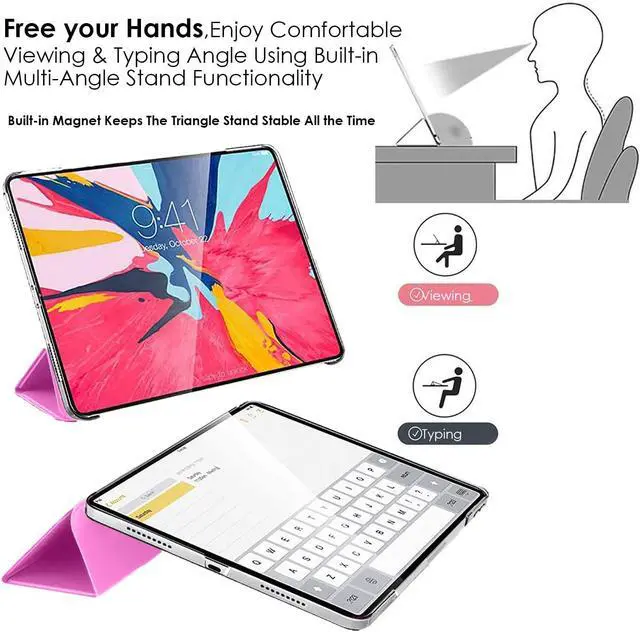 [Visualisation/saisie multi-angles [Multi-Angle Viewing/Typing]] Built-in Multiple Angle Viewing/Typing Stand makes it much more comfortable for Typing, watching videos, surfing web & reading while keeping both your Hands Free & avoids any Joint Pain. Built-in Magnet also helps to hold your iPad steady while using the Multi-Angle Stand feature & prevents your iPad from falling.