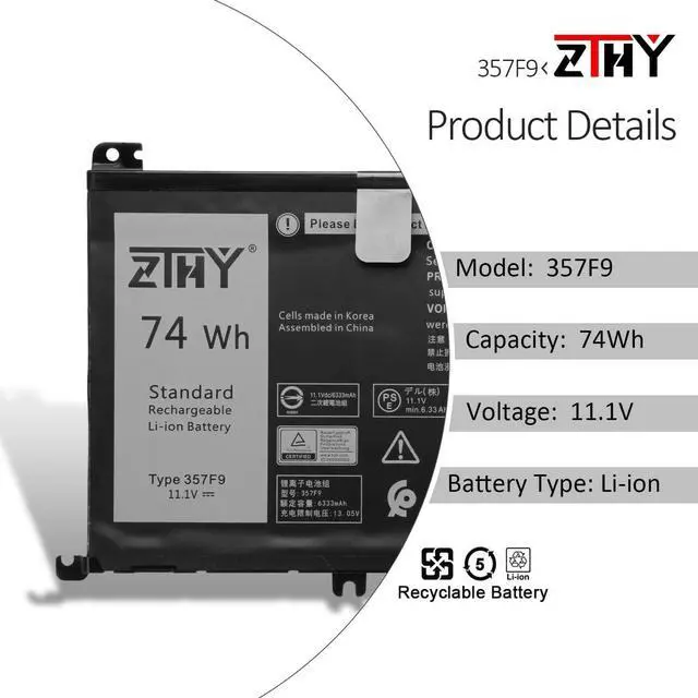Specifications Battery type: Li-ion. Color:Black. Capacity: 74Whr/6Cell. Voltage: 11.1V. 100% New from Manufacturer. Up to 500 recharge cycles over the life of the battery.