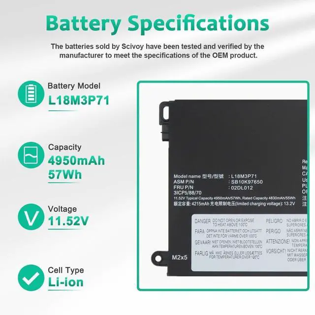 PERFECT-FIT BATTERY MODELS:Support for L18M3P71 L18L3P71 L18S3P71 SB10K97649 02DL012 02DL011 SB10K97650 5B10W13913 5B10W13914