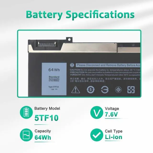 LONG-LASTING BATTERY LIFE:With 7.6V,capacity (64Wh/8000mAh),the(5TF10) battery ensures all-day power for your laptops in a factory-fresh, never-used battery pack designed for maximum performance.
