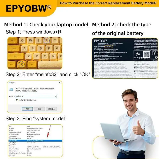 Purchase Skills Please open the back cover of the laptop before ordering and make sure that the original battery model is consistent with the listing. After getting the battery, please install the battery correctly, make sure that the battery connector is firmly connected to the laptop motherboard, and use the original charger to charge the laptop.Discharge the new battery to 5% (not 0%), then charge and cycle 3-4 times to wake up the new battery.