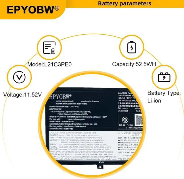 Specifications Battery Model: L21C3PE0 / Voltage: 11.52V / Capacity: 52.5Wh 4558mAh 3-cell / Color: Black / Condition: Brand New.