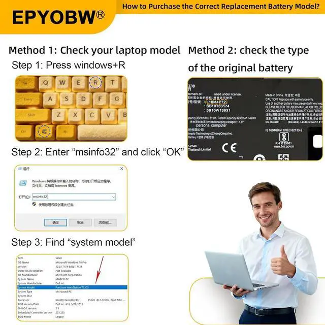 Purchase SkillsPlease open the back cover of the laptop before ordering and make sure that the original battery model is consistent with the listing. After getting the battery, please install the battery correctly, make sure that the battery connector is firmly connected to the laptop motherboard, and use the original charger to charge the laptop.Discharge the new battery to 5% (not 0%), then charge and cycle 3-4 times to wake up the new battery.