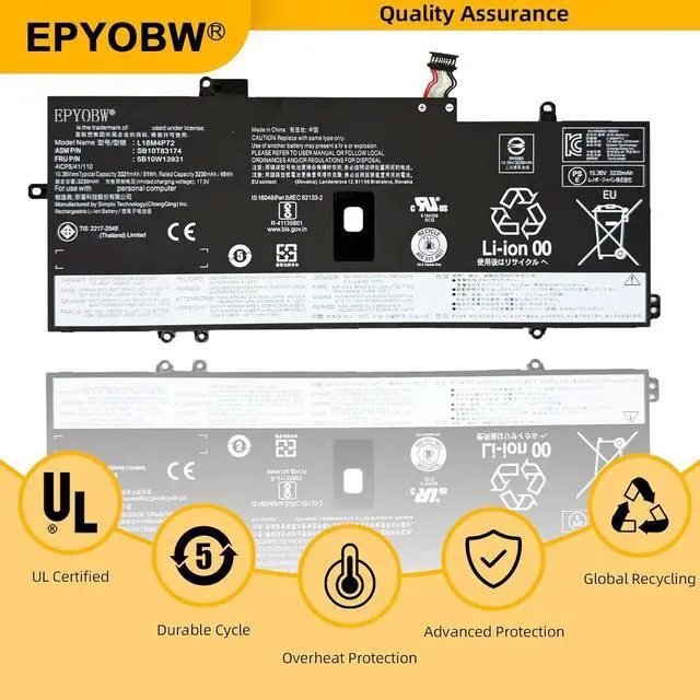 EPYOBW PromiseAll EPYOBW's batteries are certificated by UL/CE/FCC/RoHS. Our batteries are tested by strict quality control standards to ensure that the capacity is true, stable current, low self-discharge.And we also have short circuit, overheat, and overload protections. We are confident in the performance of replacement batteries and professional service.