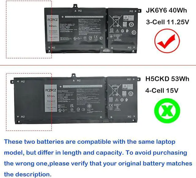 Replacement for Part NumberJK6Y6 0JK6Y6 H5CKD 07T8CD 7T8CD 0TXD03 TXD03 09077G 9077G C5KG6 CF5RH (NOTE: Please kindly open your laptop back cover to confirm your original battery model is the same as listed here. Thanks!)