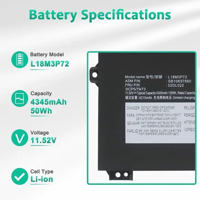 PERFECT-FIT BATTERY MODELS: Support for L18L3P72 L18M3P72 L19M3P71 02DL021 02DL022 02HM886 5B10W13927 5B10W13928 5B10W13929 SB10K97659 SB10T83170 SB10K97660 SB10V03234.
