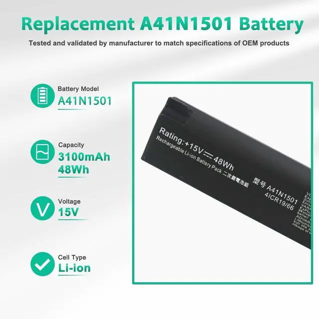 LONG-LASTING BATTERY LIFE: With 15V capacity ( 48Wh/4-cell ), The (A41N1501) battery ensures all-day power for your laptops in a factory-fresh, Never-used battery pack designed for maximum performance.