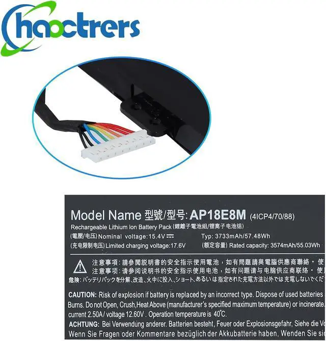Compatible Laptop Models:Nitro 5 AN517-51 AN515-54 AN517-52 AN515-43 Nitro 7 AN715-51 Aspire 7 A715-74 A715-74G Predator Triton 300 PT315-51 Helios 300 PH315-52 PH317-53 ConceptD 3 Pro CN315-71P 5 Pro CN515-71 CN515-71P Series Notebook Battery