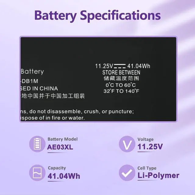 LONG-LASTING BATTERY LIFE: With 11.25Vcapacity (41.04Wh/3467mAh), the (AE03XL) battery ensures all-day power for your laptops in a factory-fresh, never-used battery pack designed for maximum performance.