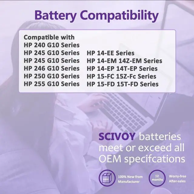 GUARANTEED FIT THESE LAPTOP MODELS:Compatible with HP 240 G10 Series; for HP 245 G10 Series; for HP 246 G10 Series; for HP 250 G10 Series; for HP 255 G10 Series; for HP 256 G10 Series; for HP 14-EE 14-EE0000 Series; for HP 14-EM 14-EM0000 Series; for HP 14-EP 14-EP0000 Series; for HP 15-FC 15-FC0000 Series; for HP 15-FD 15-FD0000 Series.