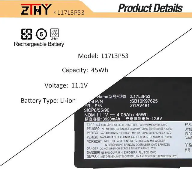 Compatible Part NumberL17L3P53 L17M3P55 L17C3P53 01AV483 01AV481 01AV482 SB10K97626 SB10K97627 SB10K97625