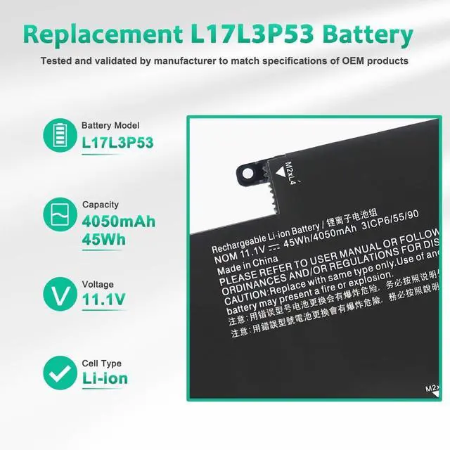 LONG-LASTING BATTERY LIFE: With 11.1V capacity ( 45Wh/4050mAh ), the ( L17M3P55 ) battery ensures all-day power for your laptops in a factory-fresh, never-used battery pack designed for maximum performance.
