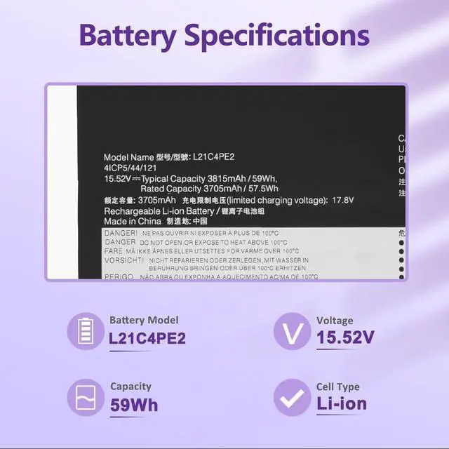 PERFECT-FIT BATTERY MODELS: Support for L21C4PE2 L21M4PE2 L21D4PE1 L21L4PE2 SB11F29412 5B11F29411 SB11F29410 5B11F29414 SB11F29418 5B11F29421.