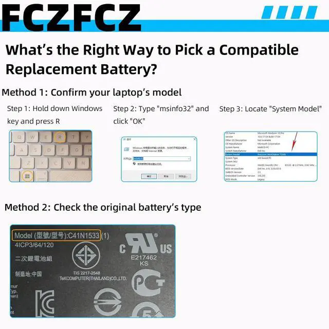 InstructionsPlease open the back cover of the laptop before purchasing and confirm that the original battery type is the same as the picture. Please read the battery instruction manual carefully before installing the battery. Please install the battery correctly and ensure that the battery interface and the motherboard are firmly connected. Please use the original charger to charge the laptop. After battery installation, discharge the new battery to 5% (not 0%), then charge and cycle 3-4 times to wake up the new battery.