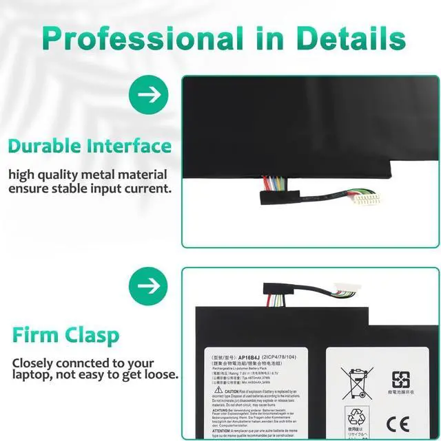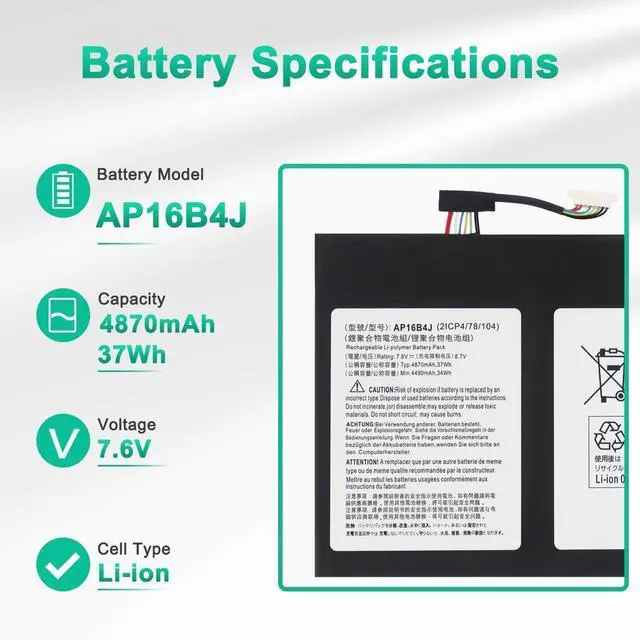 LONG-LASTING BATTERY LIFE:With 7.6V, capacity ( 37Wh/4870mAh), the( AP16B4J) battery ensures all-day power for your laptops in a factory-fresh, never-used battery pack designed for maximum performance.