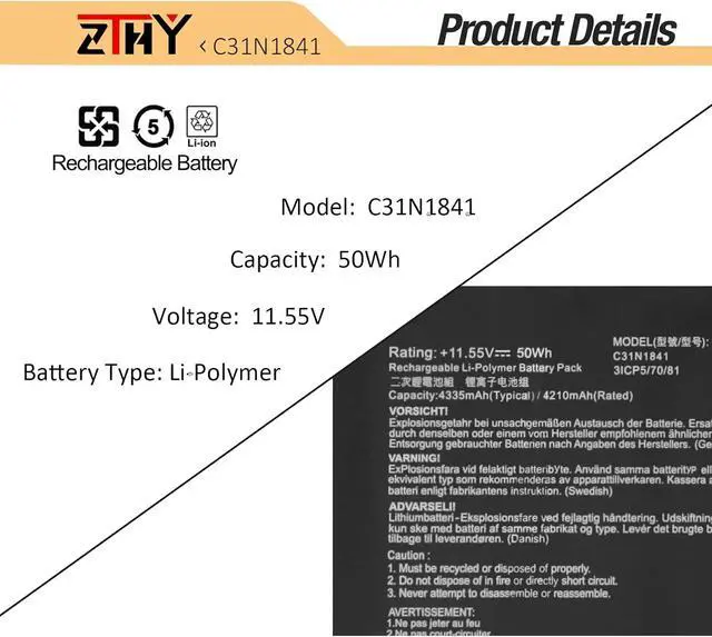 Compatible Part Number - C31N1841, 0B200-03420200, 3ICP5/70/81