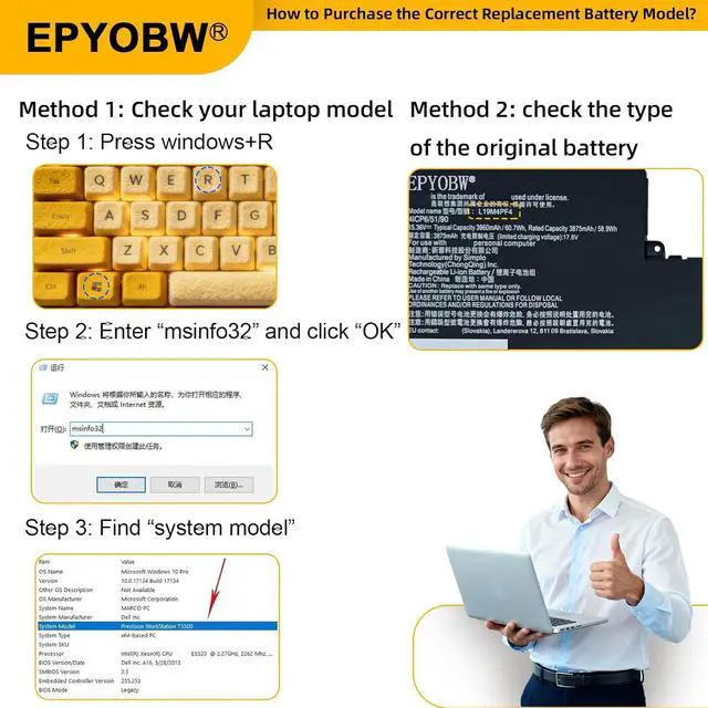 Purchase SkillsPlease open the back cover of the laptop before ordering and make sure that the original battery model is consistent with the listing. After getting the battery, please install the battery correctly, make sure that the battery connector is firmly connected to the laptop motherboard, and use the original charger to charge the laptop.Discharge the new battery to 5% (not 0%), then charge and cycle 3-4 times to wake up the new battery.