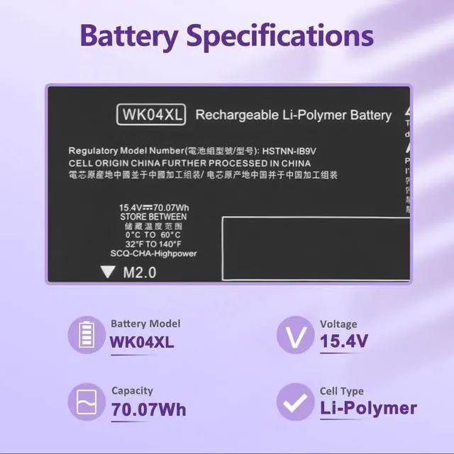 LONG-LASTING BATTERY LIFE: With 15.4V, capacity (70.07Wh/4323mAh), the (WK04XL) battery ensures all-day power for your laptops in a factory-fresh, never-used battery pack designed for maximum performance.