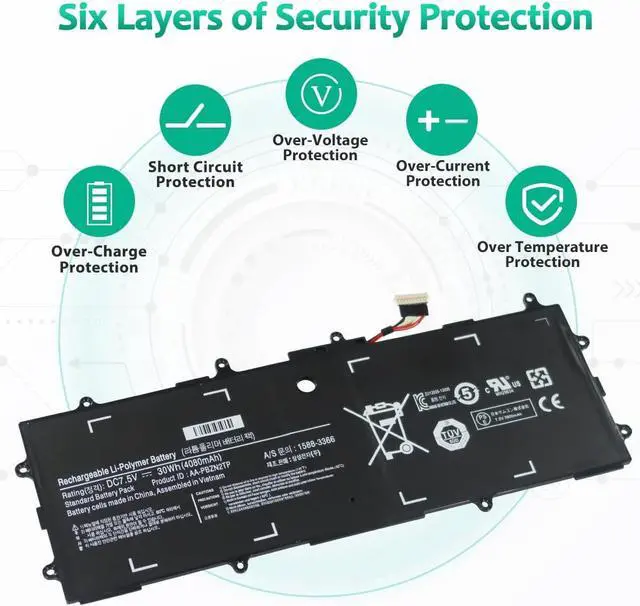 • LONG-LASTING BATTERY LIFE:With 7.5V,capacity (30Wh/4080mAh),the(AA-PBZN2TP) battery ensures all-day power for your laptops in a factory-fresh, never-used battery pack designed for maximum performance.