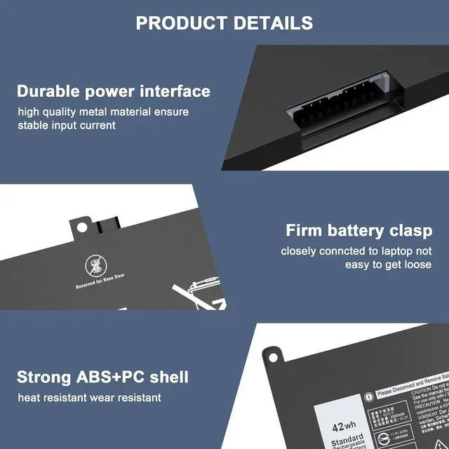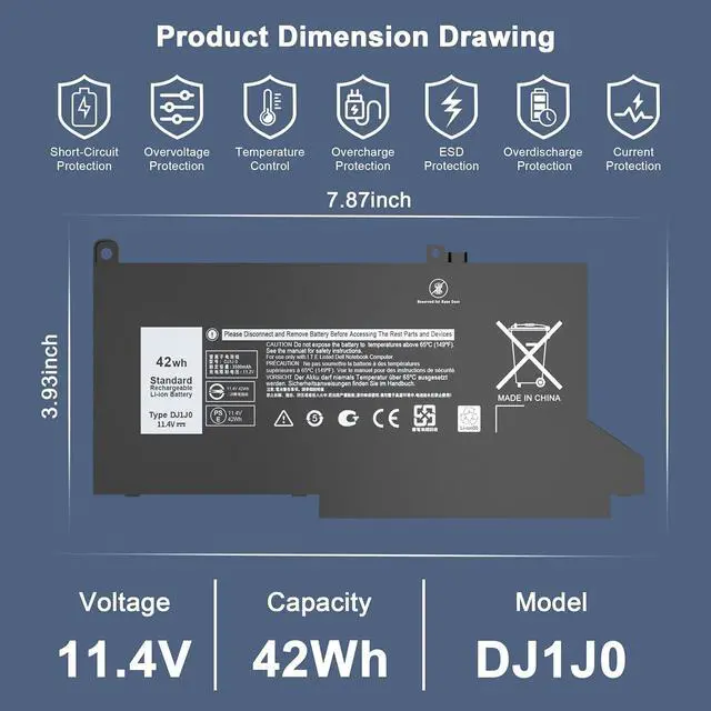 Specifications:DJ1J0 Battery ; Voltage: 11.4V; Capacity:42Wh; Cells: 3 cells; Color: Black; Condition: New ,The package also includes 1pcs DJ1J0 battery, 2pcs screwdrivers, and 1pcs instruction